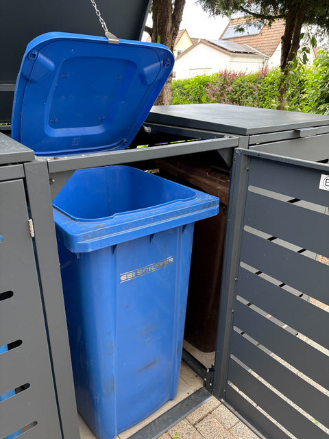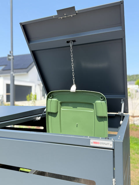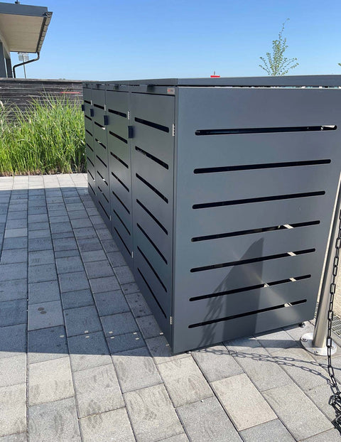 No more unsightly trash bins! With Alubert from BIO Stefan, you combine functionality with modern design. Robust, weatherproof, and easy to handle – the perfect solution for your waste disposal. The Alubert 3er fits three trash bins with 120l capacity or also 240l.