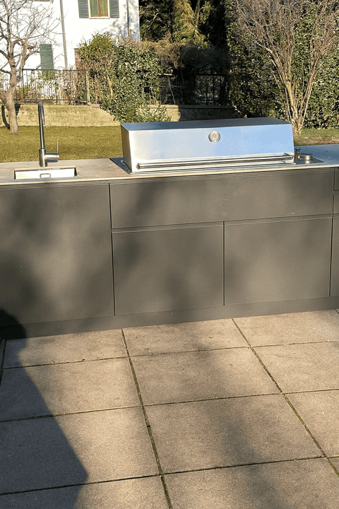 - Materiali di prima qualità: HPL resistente alle intemperie, elegante pietra naturale e acciaio inox durevole garantiscono una cucina da esterno che resiste anche alle condizioni più difficili.
