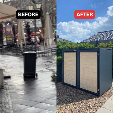 Holzmichl biedt een lichte maar robuuste constructie voor hoge duurzaamheid en onderhoudsvrijheid. Door het elegante ontwerp dat past bij je vensterbanken en garage, geeft de afvalcontainer je voortuin een elegante uitstraling. Vooral creatief kun je zijn met het ECHT-houten front, dat ook optimaal geolied of geschilderd kan worden.