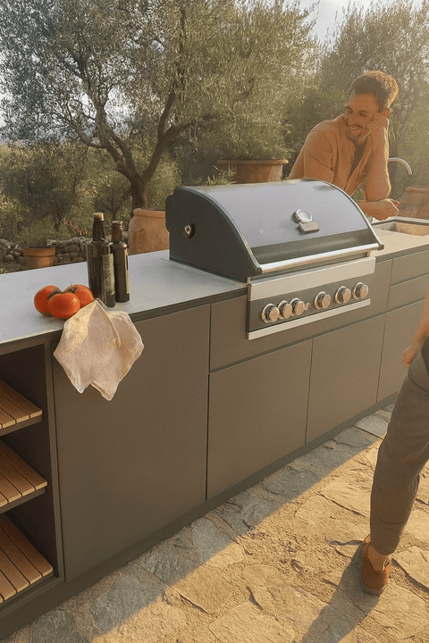 Cu varianta cu 4 module a bucătăriei de exterior emma îți extinzi experiența în aer liber cu mai mult spațiu de lucru, mai mult confort și mai multă flexibilitate. Fie că este vorba de o masă în familie, o seară cu grătar sau o cină cu prietenii – aici fiecare găsește ceva pe gustul său. Această bucătărie îți oferă tot ce ai nevoie pentru a găti afară la fel de confortabil ca în interior.